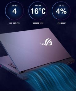 Kích thước nhỏ gọn với hệ thống tản nhiệt hiệu quả và yên tĩnh hơn. Keo tản nhiệt kim loại lỏng giúp giảm nhiệt độ cho CPU. Các quạt Arc Flow 84 cánh với thiết kế mới giúp thông khí tốt hơn và giảm độ xoáy. Luồng khí chạy qua 4 ống đồng và quạt đầu ra giúp nhanh chóng loại bỏ khí nóng. Những cải tiến này cho phép ROG Boost ép xung GPU ở chế độ Turbo và giúp tăng thêm không gian tản nhiệt để đạt được xung nhịp GPU cao hơn.